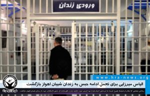 به گزارش خبرگزاری هرانا، ارگان خبری مجموعه فعالان حقوق بشر در ایران، روز شنبه ۱ شهریور ۱۳۹۹، الیاس میرزایی، زندانی سیاسی با اتمام ایام مرخصی به زندان شیبان اهواز بازگشت.